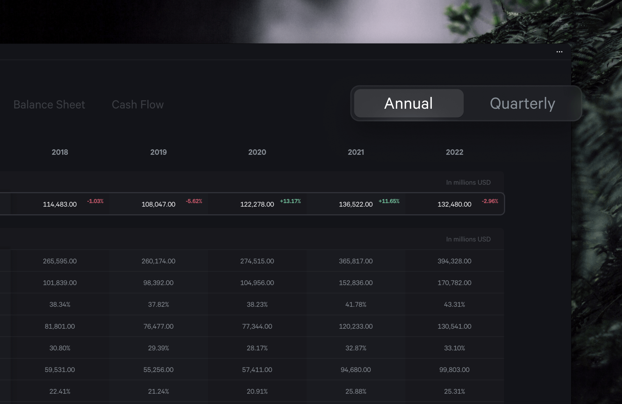 Due to a config error in our cron jobs, some system-level overrides weren't allowed. Specifically, we couldn't override the properties `[core]num_years_history` and `[core]num_quarters_history`, which caused a bug in our processing pipeline. This glitch messed up the financial data flow for our instruments (symbols) and led to missing annual financial info for years before 2020 in the 'Annual' tab.