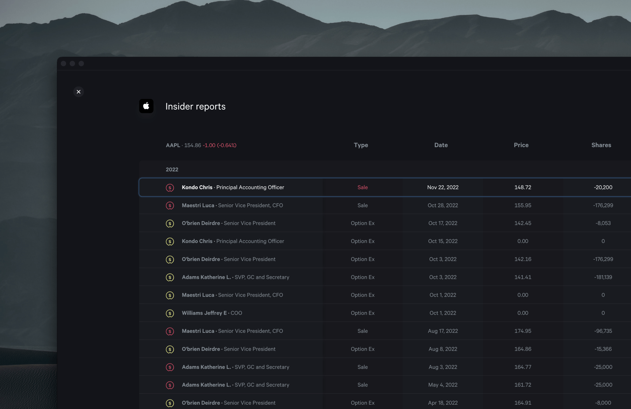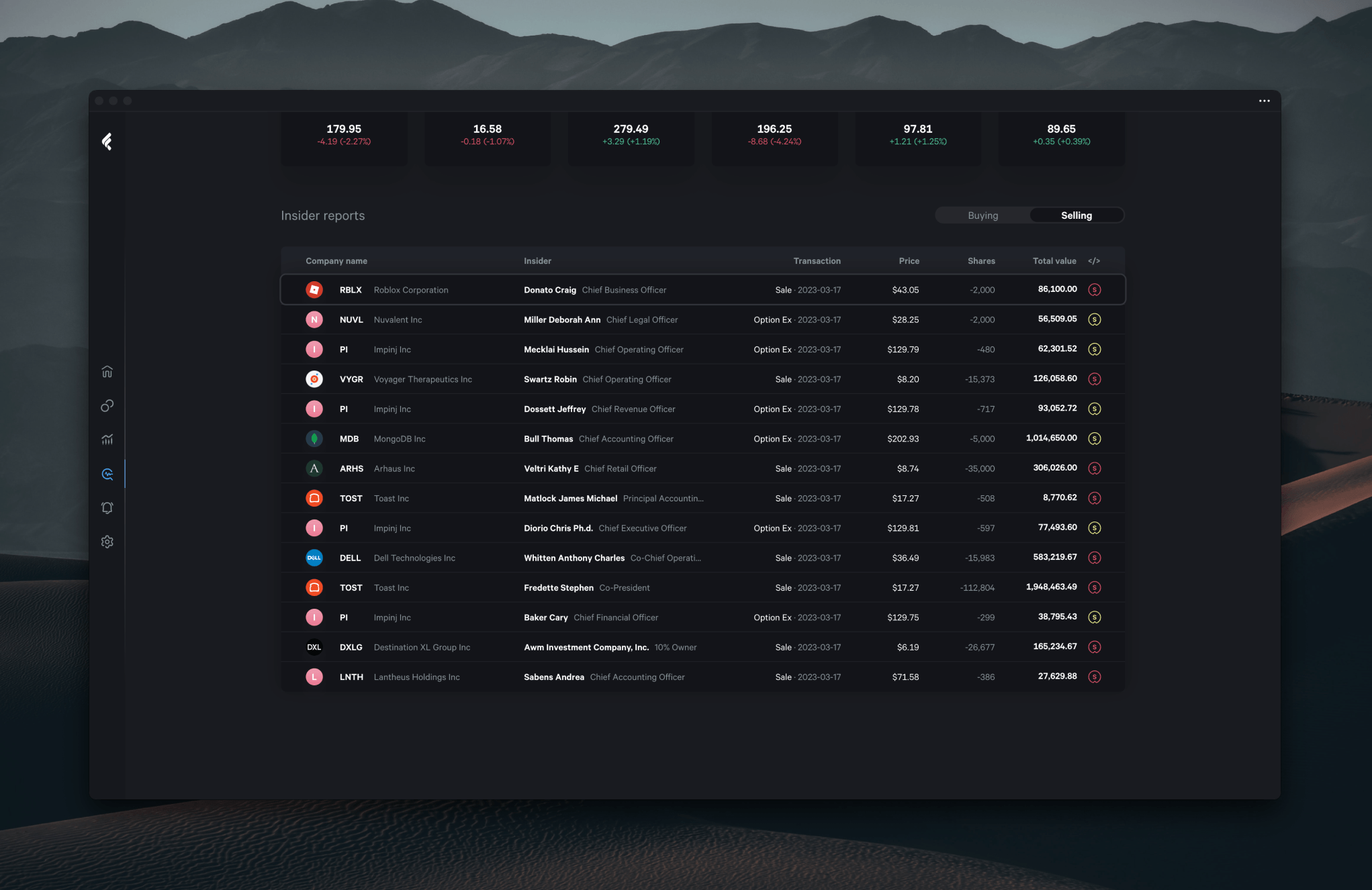 This is where our enhanced insider reports pages come in handy. The improved filtering and color-coded symbols allow you to track and interpret this insider trading activity more easily, leading to more informed investment decisions. As always, we strive to equip you with the most accurate and accessible financial information, so you can invest confidently.