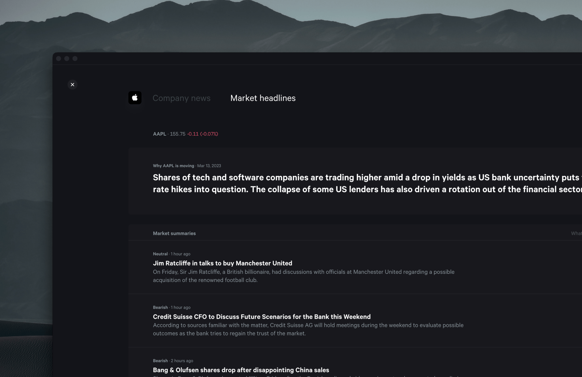 Our market headlines provide a comprehensive view of the latest market developments and include a succinct explanation of why prices are moving. By condensing each headline into a single summary, our customers can easily filter out irrelevant noise and quickly gauge the overall sentiment of an asset.